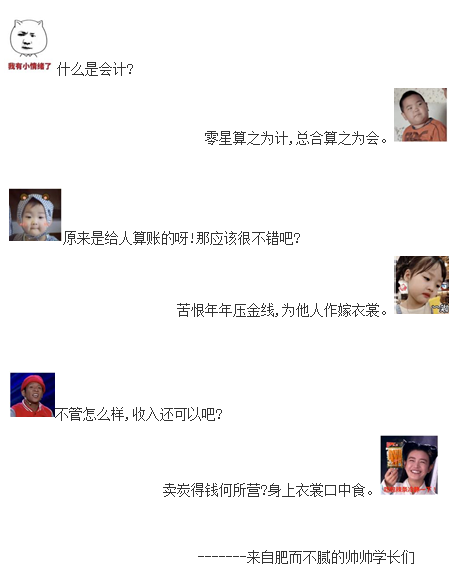 -亲戚朋友老师同学:嚯哟~女孩纸学会计好,以后出来工作很得闲的。