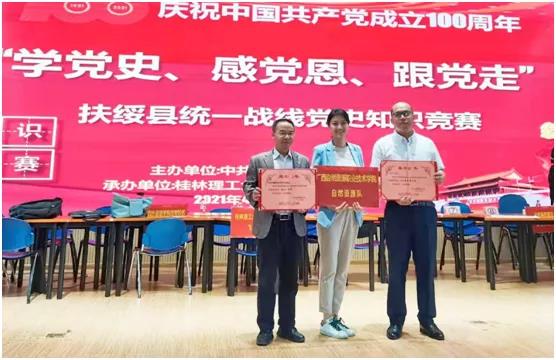 好消息传来:近日由扶绥县委统战部主办、桂林理工大学南宁分校党委统战部承办的“学党史、感党恩、跟党走”党史知识竞赛活动圆满结束,pp电子官方网站团体总分第一名的佳绩!学院老师黄颀钧,在比赛中表现出色,获得个人最佳得分奖。