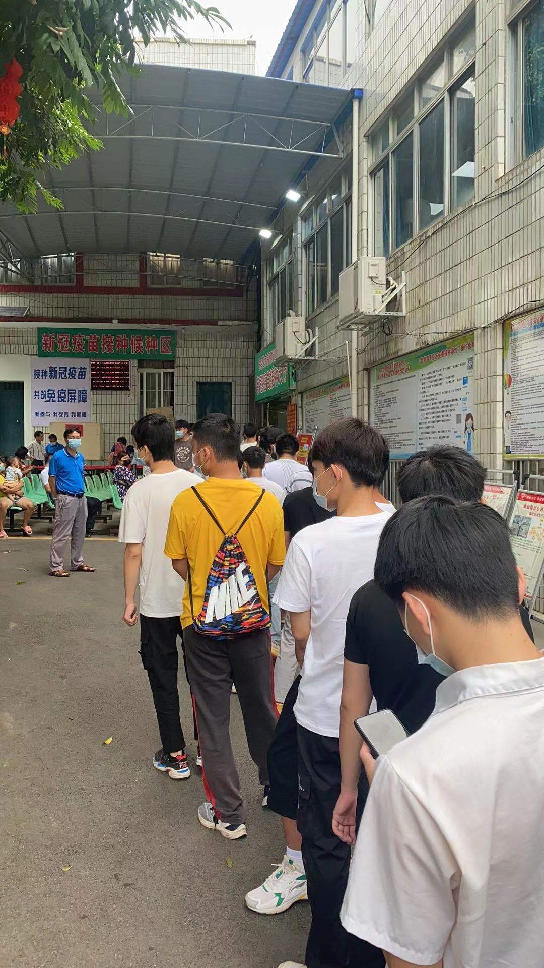 学生有序排队前往疫苗接种点
