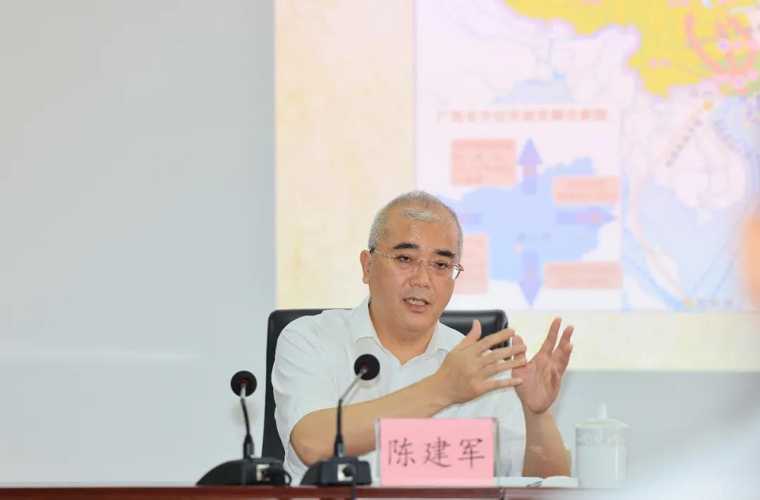 陈建军围绕深入落实习近平总书记视察广西时提出的“四个突出特点”的重要论述和“四个新”的总要求,以及四个方面的重要要求,要求全区自然资源系统学深悟透、牢记嘱托、感恩奋进,全力保护好广西的山山水水,加强要素保障助推经济高质量发展,用“长牙齿的硬措施”守牢耕地红线,全力支持乡村振兴提高人民生活品质,全面推动矿业转型升级绿色发展,为建设新时代中国特色社会主义壮美广西作出新的更大的贡献。
