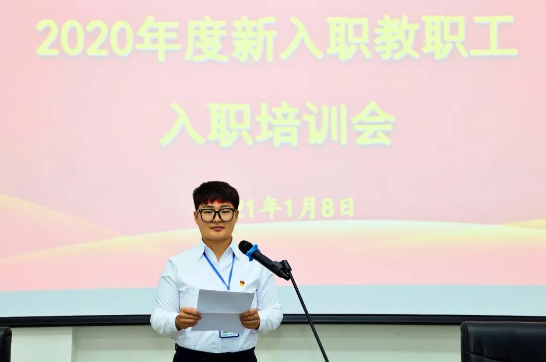 会上,学院2020年度优秀教师代表李秋晓做了教学及管理经验的介绍。学院2020年度新入职教职工代表覃豪杰,代表57名新入职的教职工,进行了表态发言。随后主席台就坐的学院领导向新入职的教职工发放了聘书。