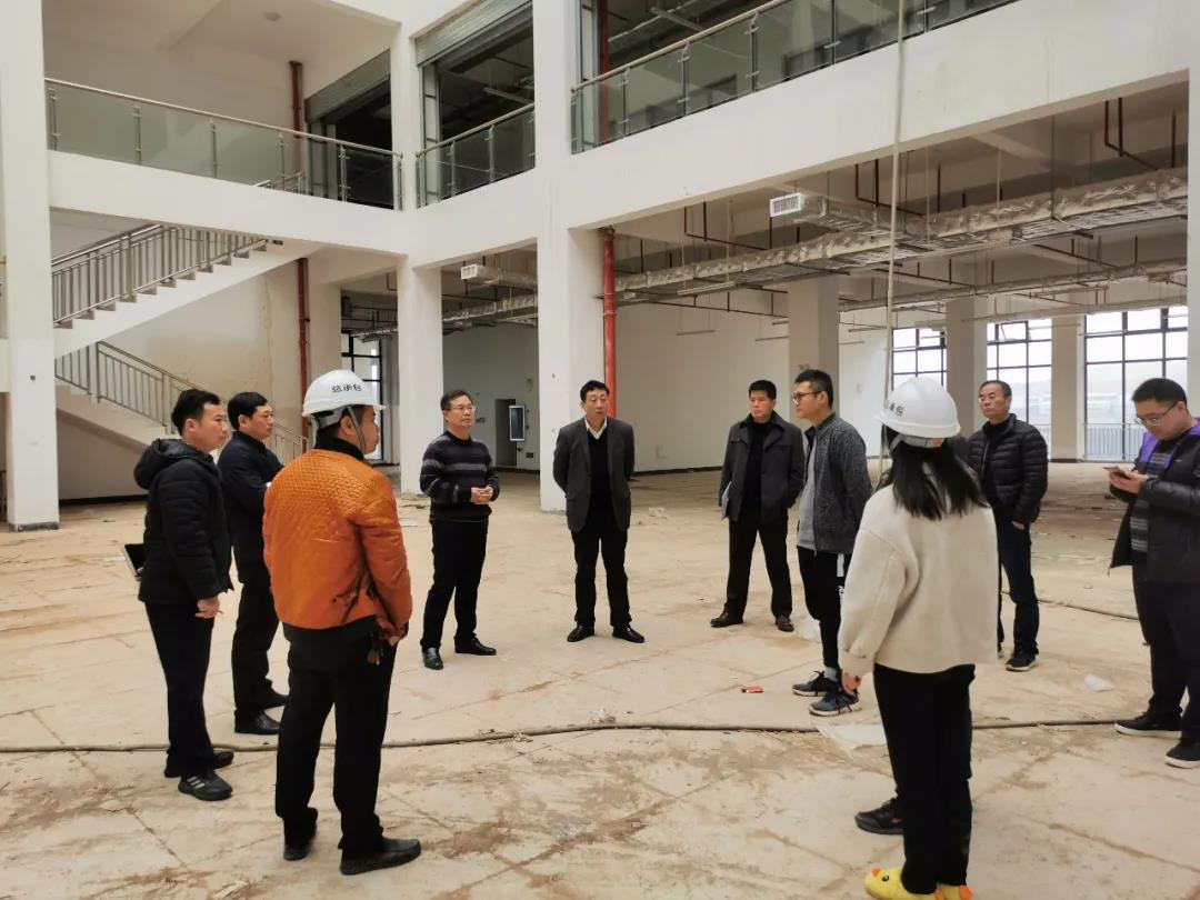 2020年岁末,自治区自然资源厅党组副书记、副厅长、一级巡视员谢瑾瑜及厅人事处处长杨健一行,到学院一期项目施工现场调研检查。谢瑾瑜要求必须加快推进一期工程的扫尾工作,特别是学院图书馆、体育馆、会堂要尽快交付使用。学院党委书记陈朝新、院长冯兵、党委副书记兼纪委书记刘勇、副院长韦绍宁、副院长宇鹏及施工单位现场负责人等参与检查。