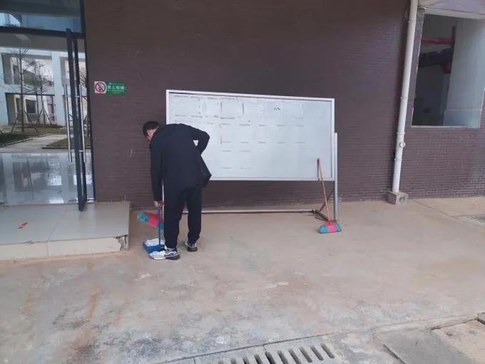 在进行了任务分配后,同学们来到实训楼及教学楼,清洁实训器材、清理杂物废纸,分工合作,高效配合。很快就将学院各个实训楼打扫得干干净净。