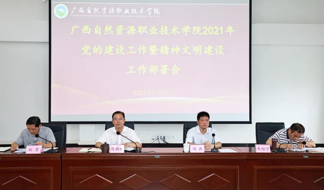 在会议中,学院副院长韦绍宁宣读了自治区自然资源厅2021年精神文明建设工作计划;学院党委副书记兼纪委书记刘勇宣读了自治区党委教育工委2021年党建工作要点。