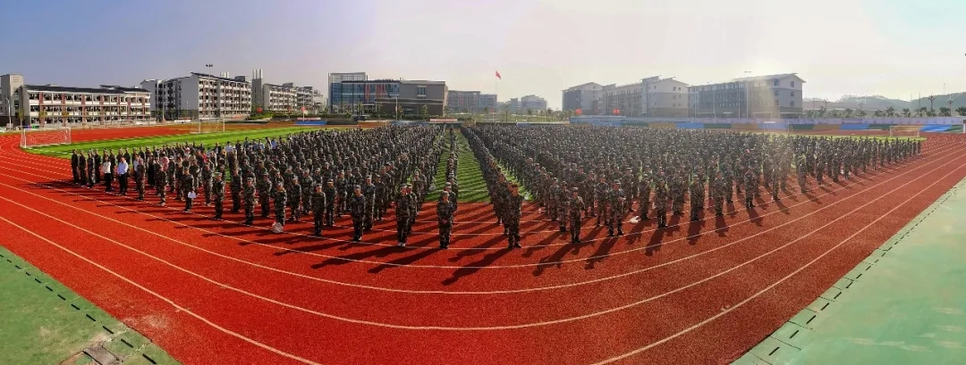 广西壮族自治区自然资源厅党组副书记、副厅长、一级巡视员谢瑾瑜,扶绥县委常委、县长黄建辉,自然资源厅人事处处长杨健,军训承训单位——广西陆战军训基地主任邵兵,学院党委书记陈朝新,学院院长冯兵,党委副书记兼纪委书记刘勇,副院长韦绍宁,副院长宇鹏等出席典礼,全体教职工及2000多名2020级新生参加了仪式。