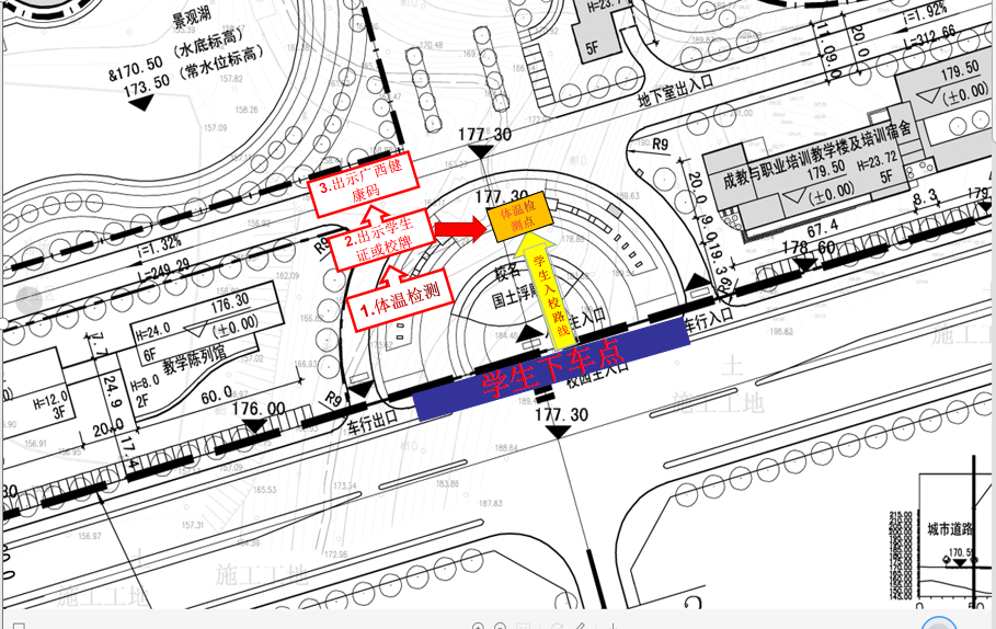 有序核验入校。返校日,同学们有序排队,自觉接受体温检测和扫码(显示健康码)等身份核验,经允许后方能进校。疫情防控期间,学校将按照“五个一律”要求(未经学校批准学生一律不准返校,校外无关人员一律不准进入校门,师生员工进入校门一律核验身份和检测体温,对发热、咳嗽者一律要求其到就近医疗机构发热门诊就诊,不服从管理者一律严肃处理)实行校园封闭管理。学生返校当日应从学校正大门入校;送行车辆在校门口即停即走,请家长和同学们给予理解。