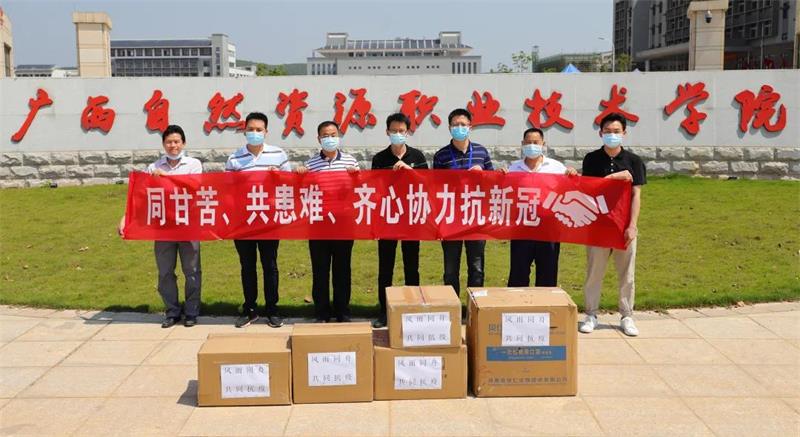 学院副院长韦绍宁代表学院领导班子及全体师生接受了物资捐赠且致以谢意,并表示学院有关方面将统筹协调好这批物资的使用调度,确保把疫情防控的保障落实到位。