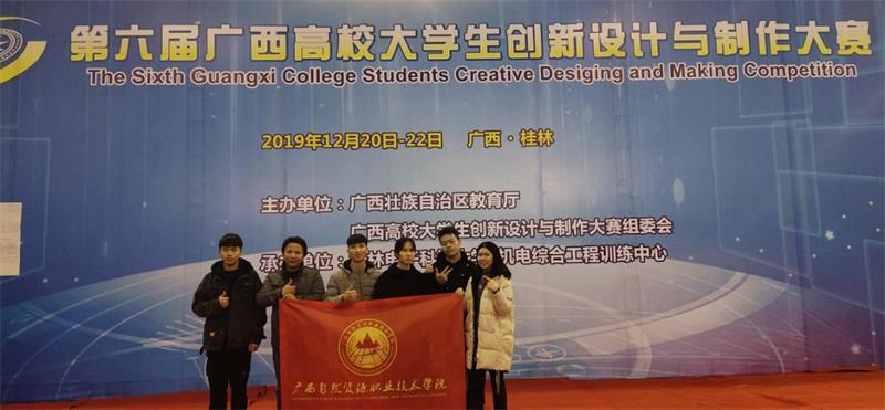 2019年12月20日至22日,第六届广西高校大学生创新设计与制作大赛于桂林电子科技大学举行,此次大赛是由自治区教育厅组织的省级比赛,大赛由17所本科和13所专科院校3500余人参与;获得决赛资格的有412件作品,按50%比例筛选出247支精英代表队参加现场赛。在学院学生工作与招生就业处和教务科研处的精心组织下,由指导老师罗伟泰带领pp电子官方网站青英创创新创业协会的五名成员组成赴桂林参加比赛。