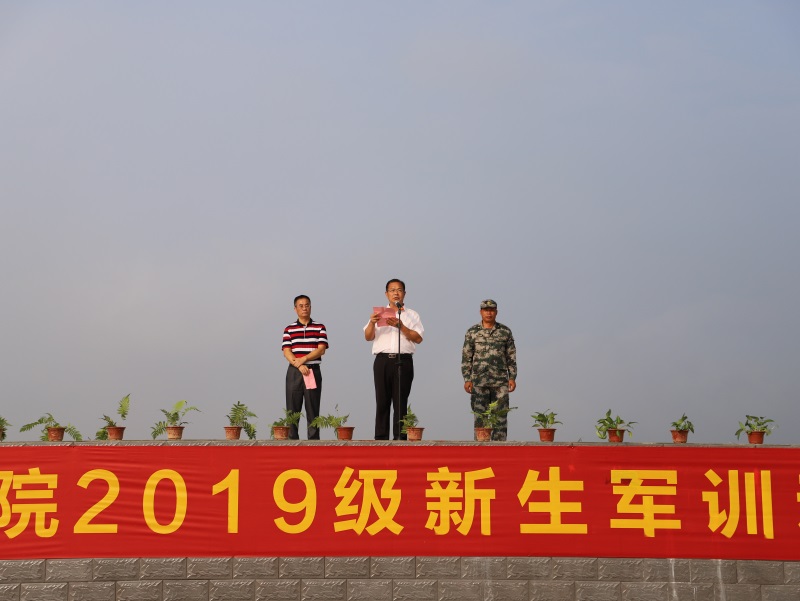 最后,学院主持全面工作负责人陈朝新作军训动员讲话。他强调,军训是在校大学生接受国防教育、履行兵役义务的一种形式,是提高国防教育质量、培养高素质后备兵员的重要途径,也是实现立德树人根本任务和党在新时代强军目标的根本要求。陈朝新对参训学生提出了三点要求:一是居安思危,树立国防意识,要时刻准备着保家卫国,捍卫国威;二是刻苦训练,听从指挥,要以军人的标准来要求自己,严守纪律,刻苦训练,磨炼意志;三是持之以恒,巩固军训成果,要继续保持和发扬军训中不怕苦、不怕累、敢于面对困难、战胜困难的顽强拼搏精神,学好专业技能,为将来投身祖国建设打下扎实的基础。