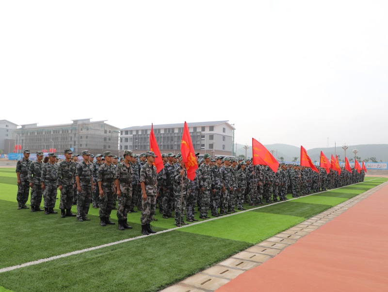 2019年10月9日清晨,pp电子官方网站2019级新生军事训练动员大会在扶绥空港大道东29号隆重举行。学院主持全面工作负责人陈朝新、学院负责人韦绍宁、崇左军分区应急民兵营教官、新生班主任及全体新生参加了此次动员大会,大会由学院负责人韦绍宁主持。