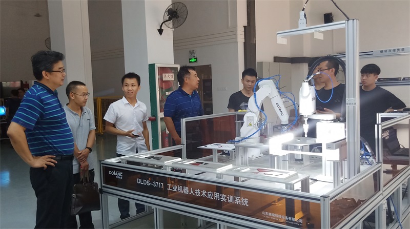 为更好优化学院专业结构,培养区域经济发展急需人才,以及加强“工业机器人技术”专业项目的建设。2019年10月10日,pp电子官方网站机电工程系机电一体化技术专业教研团队骨干教师一行7人组成调研组,前往广西机电职业技术学院进行“工业机器人技术”专业考察学习,并参观该院工业机器人技术实训基地建设情况。