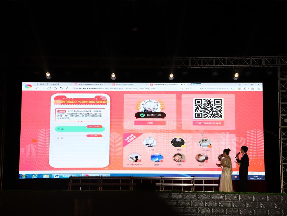 有奖答题(第二轮)穿插在节目中的党的知识抢答环节大受欢迎,同学们奋勇争先,积极抢答,场面激烈!