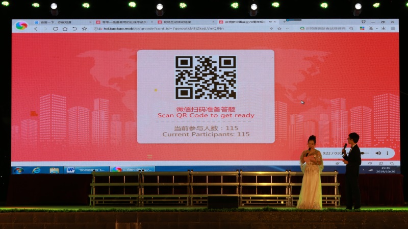 晚会随着悠扬的《我和我的祖国》乐曲声响起,全体师生情不自禁的站起身来大声歌唱“我和我的祖国 一刻也不能分割 无论我走到哪里 都流出一首赞歌......”,震撼人心的大合唱在宽敞的校园不断回响,把晚会推向了最高潮,校园沉浸在优美的歌声中,无论走到哪里我们都热爱和忠诚于祖国!歌唱的每一首赞歌都谱写着我们青春的梦想和激情!在热烈的掌声中,晚会圆满落下帷幕。