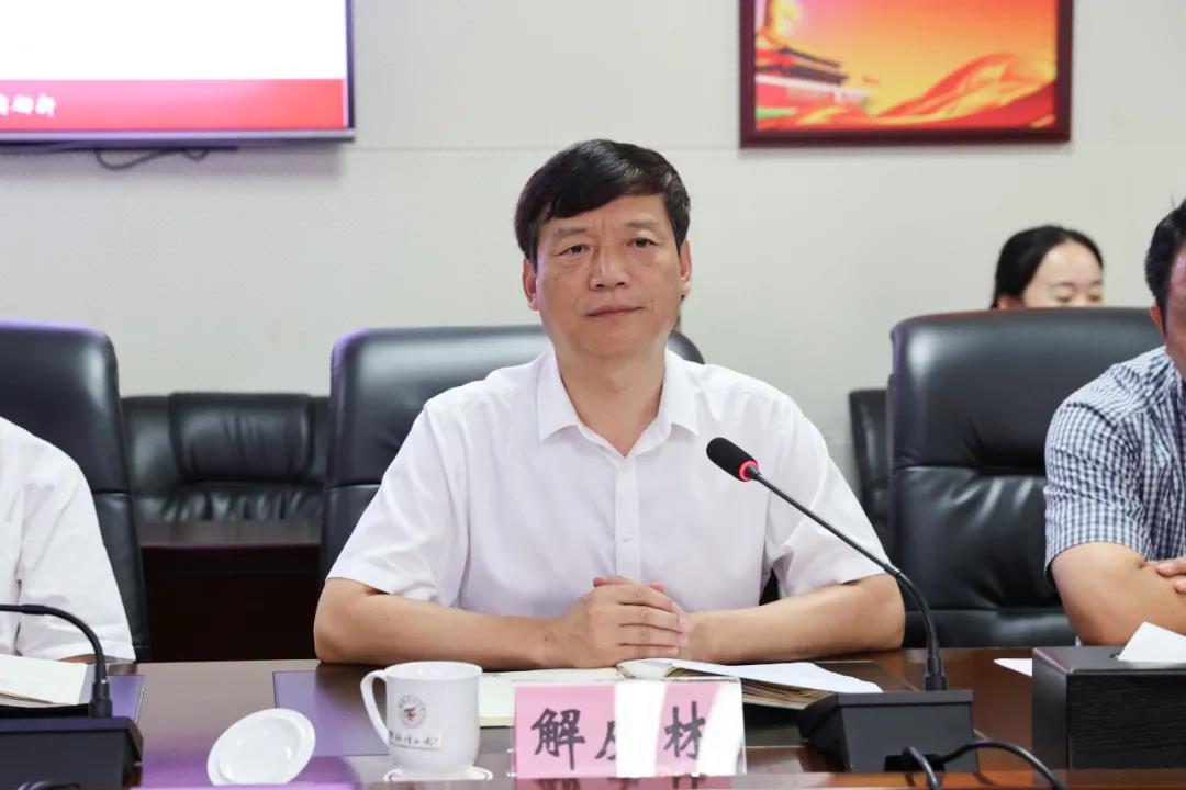 (桂林理工大学党委副书记、校长解庆林主持座谈会)