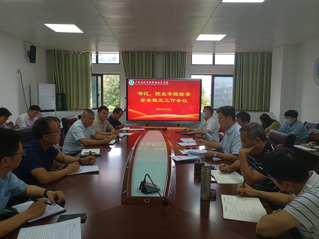 5月12日上午,pp电子官方网站召开书记、院长专题检查安全稳定工作会议。党委书记成国立、院长冯兵、副院长韦绍宁和副院长宇鹏等院领导出席会议,各处室(中心)、系(部)负责人参加会议。