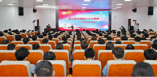 当天的活动中,郑志明向到场的数百名师生,进行了一场名为《深入学习党的二十大精神——工匠成长路上的追梦人》主题宣讲。他以大量的鲜活事例,阐述了自己从业二十六年来,专注地在行业内深耕,持续学习各类高新技能,为迈向“智造强国”征程添砖加瓦,为服务广西智能制造业奉献心力的历程。