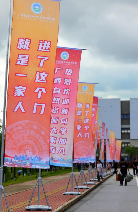 运行于南宁市区与校区的穿梭巴士无缝接站、交警部门对家长到校车辆引导停放、新生身份进行全电子化核验、对系部报到处进行可视化指引、新生宿舍钥匙精准核对发放、校区内通勤车辆高效转接、班主任辅导员为家长及新生答疑解惑、医疗后勤部门随时待命、各食堂备足餐食准时开餐、财务部门及银行机构及时反馈回应新生学费缴纳事宜。