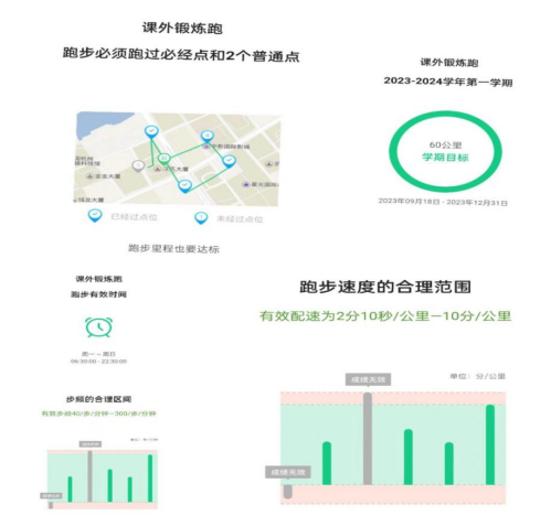 结合课堂,体教融合。学生的校园跑与体育课堂相结合,将校园跑列为在校学生体育第二课堂必修课程,引导学生在体育运动中享受乐趣、增强体质、健全人格、锤炼意志,深化体教融合,促进学生健康发展。