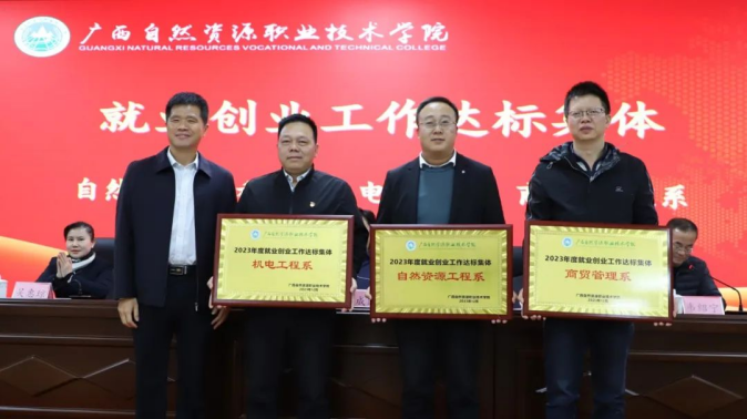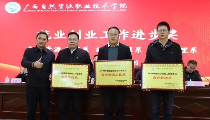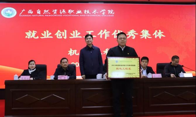 会上,韦绍宁宣读了《pp电子官方网站关于2023年毕业生就业创业工作考核结果的通知》。大会授予机电工程系“就业创业工作优秀集体”荣誉称号;授予自然资源工程系、机电工程系、商贸工程系“就业创业工作达标集体”、“就业工作进步奖”荣誉称号;授予60名教职工“就业创业工作优秀个人”荣誉称号;授予1215名毕业生“就业鼓励奖”。