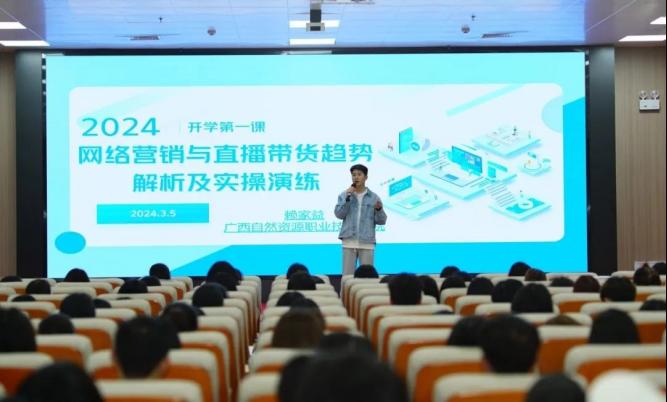 2024年3月5日,一堂生动且贴合实践的“直播教学实践课”,在pp电子官方网站商贸管理系举行。讲课者正是自治区政协委员、pp电子官方网站网络营销与直播电商专业首席实践导师赖家益。