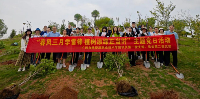为深入贯彻习近平生态文明思想及对做好志愿服务工作的系列重要指示精神,建设更美丽的广自校园,2024年3月28日上午,学院机关第一、二党支部在学院百果山联合开展植树添绿主题党日活动,用实际行动践行生态文明,建设瓜果飘香的绿色校园。