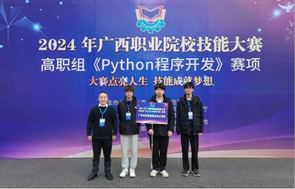 韦海清老师指导学生参加的Python程序开发项目今年再获殊荣,广西自然资源职院已连续两年在该项目获得一等奖。
