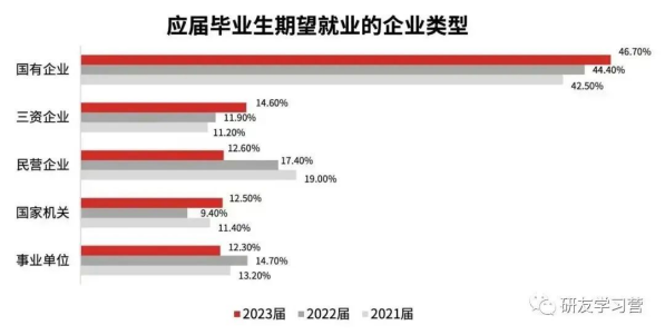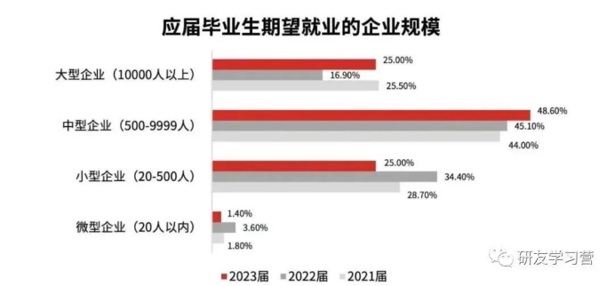 从毕业生偏好的企业类型看,国企仍是毕业生首选;对于企业规模的选择,中型企业为毕业生首选。