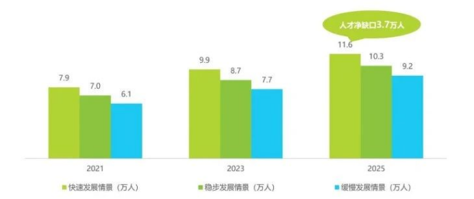 据中国汽车工程学会预测,在快速发展情景下,2025年我国智能网联汽车人才净缺口为3.7万人,为目前智能网联汽车研发人员存量的69.4%。