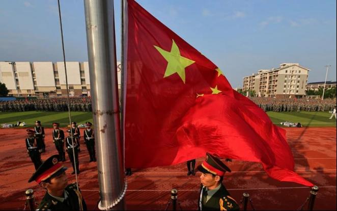 在庄严的国歌声中,五星红旗冉冉升起,全体师生庄严肃立,向国旗行注目礼,动员大会正式拉开帷幕。