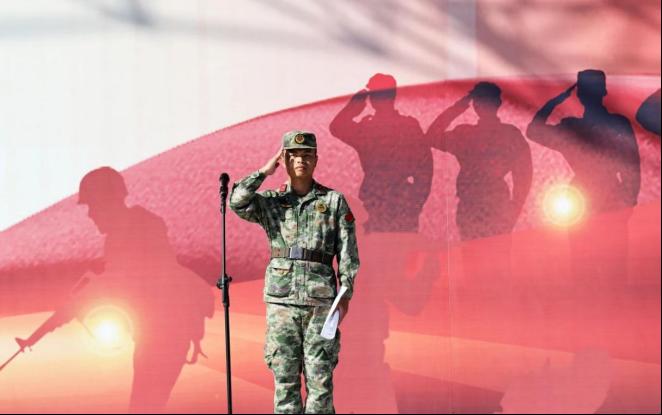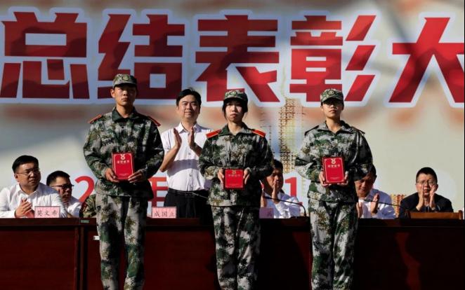 冯兵宣读了军事训练表彰决定,并提出希望广大同学把军训中养成的优良的作风、严明的纪律、规范的言行和团结协作精神保持下去,发扬光大。