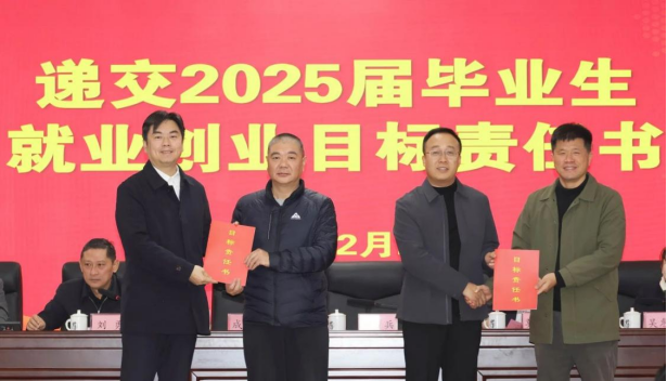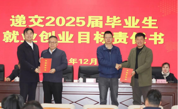 招生就业中心和各系主任向书记、院长递交2025届毕业生就业创业目标责任书,确立2025届毕业生就业创业目标责任。