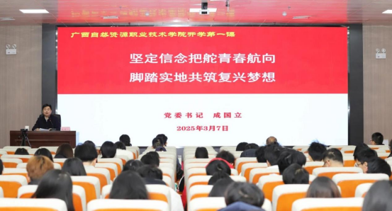 成国立在“开学第一课”中,带领师生回顾习近平总书记2025年新年贺词。并与广大师生分享了学院近期在各个领域取得的发展成绩。