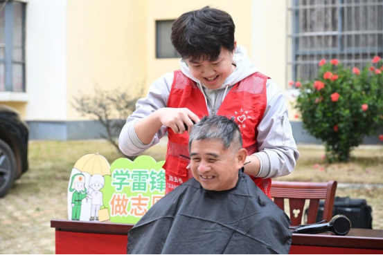 四、暖心关怀递温情爱心义剪组服务30名社区居民,助老关怀组为独居老人提供居家清洁、亲情陪护服务,行动组开展教老人使用智能手机等“定制化”服务,获社区居民的真诚点赞。