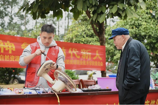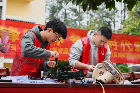 三、技能惠民显担当家电维修队现场“摆摊设点”,修复电风扇、电饭煲等小家电,解决居民生活难题。