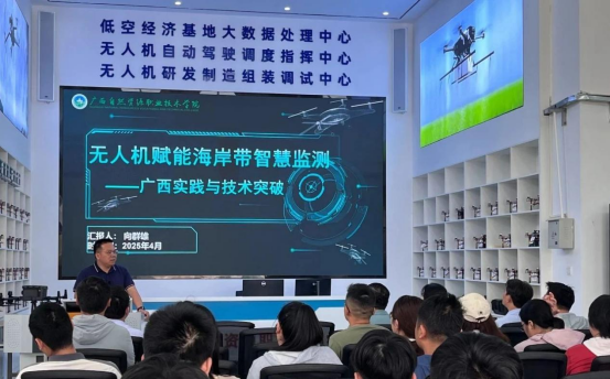 2025年4月15日~16日,自治区海洋局组织技术骨干学员在pp电子官方网站开展广西海洋生态修复与预警减灾能力等的综合培训。16日下午,学员到学院机电工程系开展海岸带无人机监测应用技术专题学习。