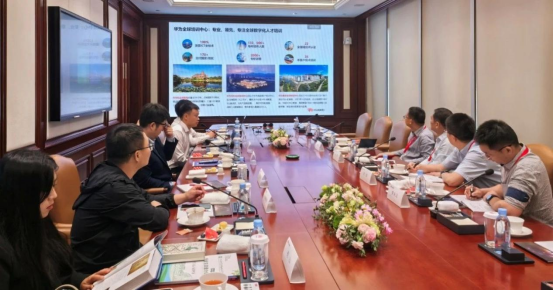 随后调研组来到华为技术有限公司参观调研。调研团队与该公司广西政企事业部主要负责人开展深入座谈交流。交流内容主要围绕人工智能领域的快速发展、华为在人工智能领域的规划布局、如何促进传统行业智能化转型,并打造具有自然资源行业特色的人工智能应用场景,服务于学校的相关专业建设发展等方面议题展开。