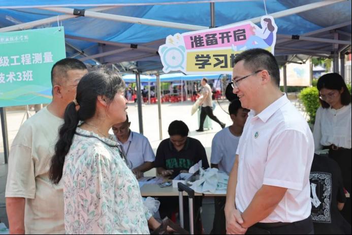 学院领导班子深入各报到点位,与新生及家长亲切交流,关心报到流程是否顺畅、对校园环境的适应情况。领导们还慰问了坚守岗位的迎新工作人员和志愿者,对他们的辛勤付出表示感谢,勉励大家继续以饱满的热情做好迎新服务工作。
