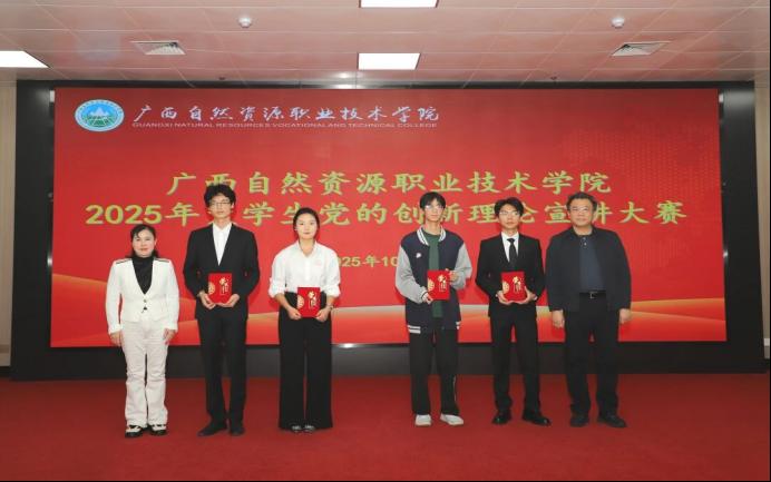 2025年10月23日下午,pp电子官方网站成功举办了2025年大学生党的创新理论宣讲大赛。桂林理工大学南宁分校党委宣传部部长张凯、广西农业工程职业技术学院党委宣传部部长乐波灵,以及本学院的党委宣传部部长吴惠琼等领导及老师应邀担任评委,评委们从立意导向、主题内容、理论逻辑、语言表达、仪态举止、形式创新6个方面对选手进行了综合评审。