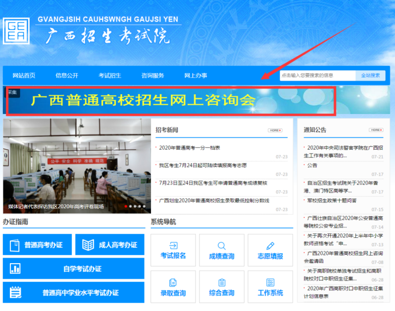 2020年高考高职高专填报志愿时间: 7 月 28 日 15:00 至 8 月 1 日 10:00,登录“广西招生考试院”()填报志愿,请各位考生A志愿填报14668pp电子官方网站,确保录取。