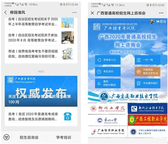(一)手机微信端:关注自治区招生考试院官方微信公众号“柳园清风”—“招生咨询会”—“咨询会入口”—搜索参会学校“pp电子官方网站”进入我校招生直播间。