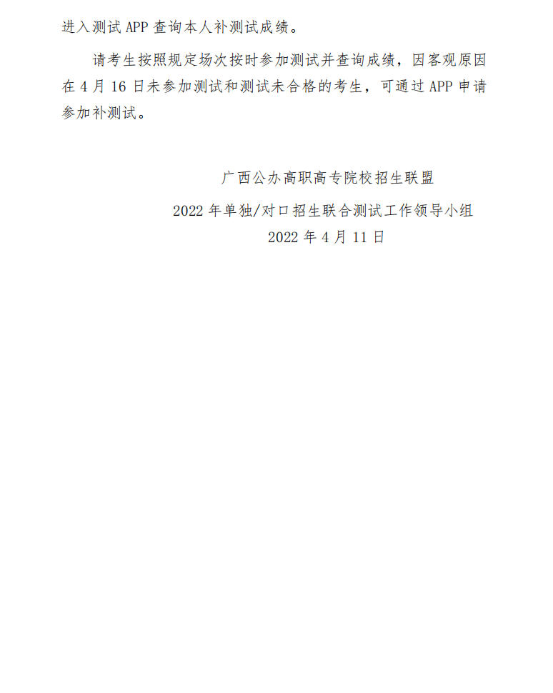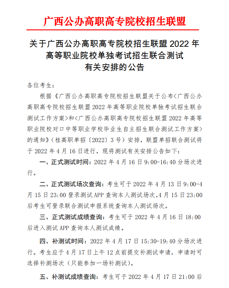 关于单独考试招生联合测试有关安排的公告
