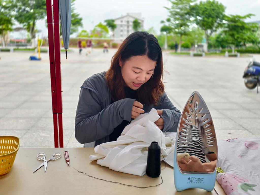衣物缝补站则专注解决师生衣物破损烦恼,脱线、破洞、改裤脚等问题均能妥善处理,纽扣、拉链更换服务也备受师生青睐,为师生衣物“焕新”提供了便利。