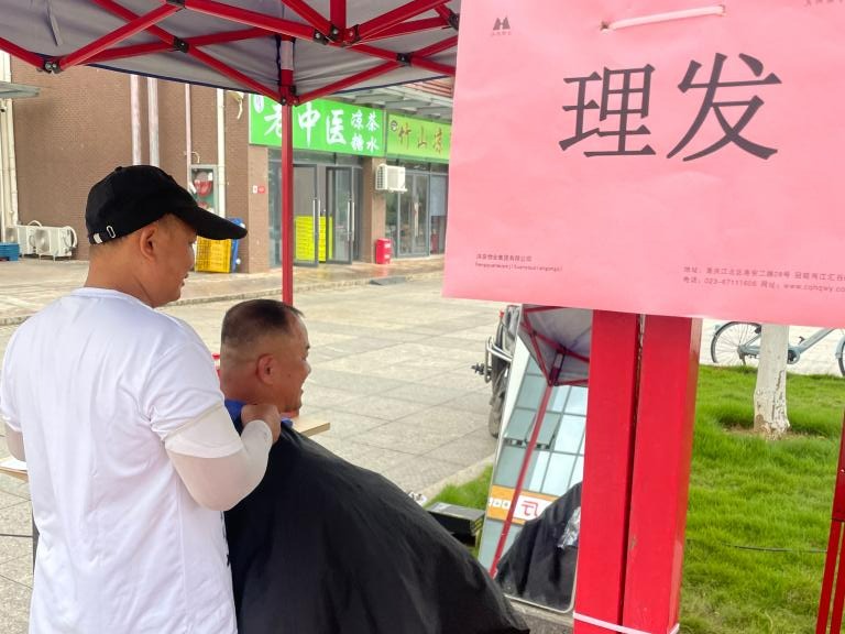 在爱心理发区,专业理发师凭借精湛手艺和贴心态度,为师生提供基础发型修剪服务,无论是男士平头,还是女士短发、刘海修剪,都细致入微,获得师生好评。