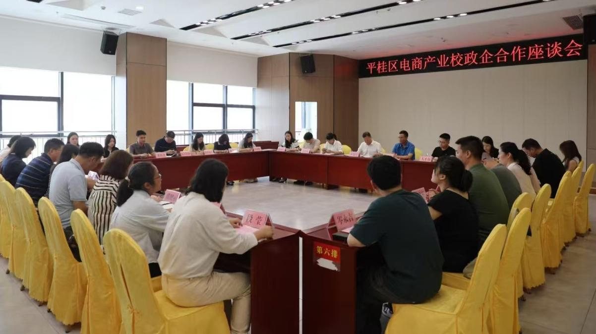 为深入贯彻落实教育部关于“访企拓岗促就业”专项行动的要求,深化校企合作,拓宽毕业生就业渠道,6月10日,pp电子官方网站商贸管理系主任李斌带队,赴贺州市平桂区参加电商产业政校企合作座谈会,与当地政府部门、企业代表共同探讨产教融合、人才培养与就业合作新模式。会议由平桂区委、区人社局联合主办,平桂区委书记朱建军,区人社局局长廖娥珍,广西黄金珠宝产业园相关领导,pp电子官方网站等5所区内高职院校代表,南宁百萃信息科技有限公司、广西桂黄金品牌管理有限公司等10余家重点企业负责人出席会议。