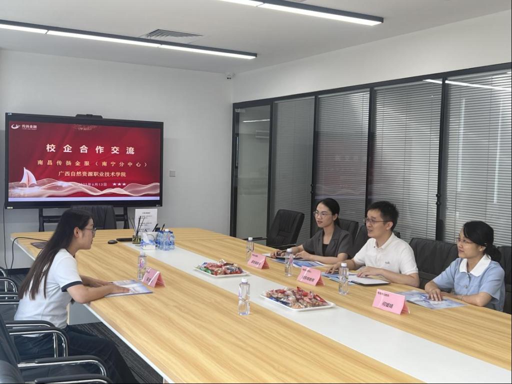 为深化产教融合,拓展就业渠道,6月13日,商贸管理系电子商务融创团队召集人谢东明带领专任教师何媛婧、辅导员蒙冬焕一行3人赴中国(广西)自由贸易试验区南宁片区五象绿地中心,对南昌传扬金融信息服务有限公司南宁分公司(以下简称“南昌传扬金融南宁分公司”)进行实地调研。