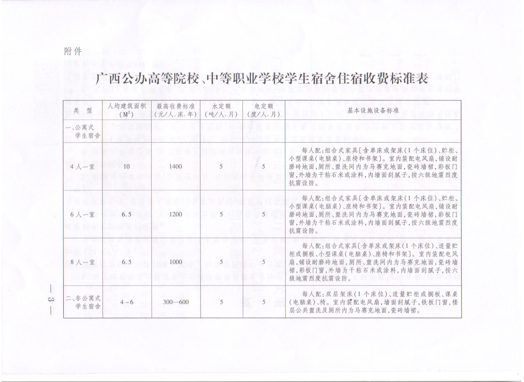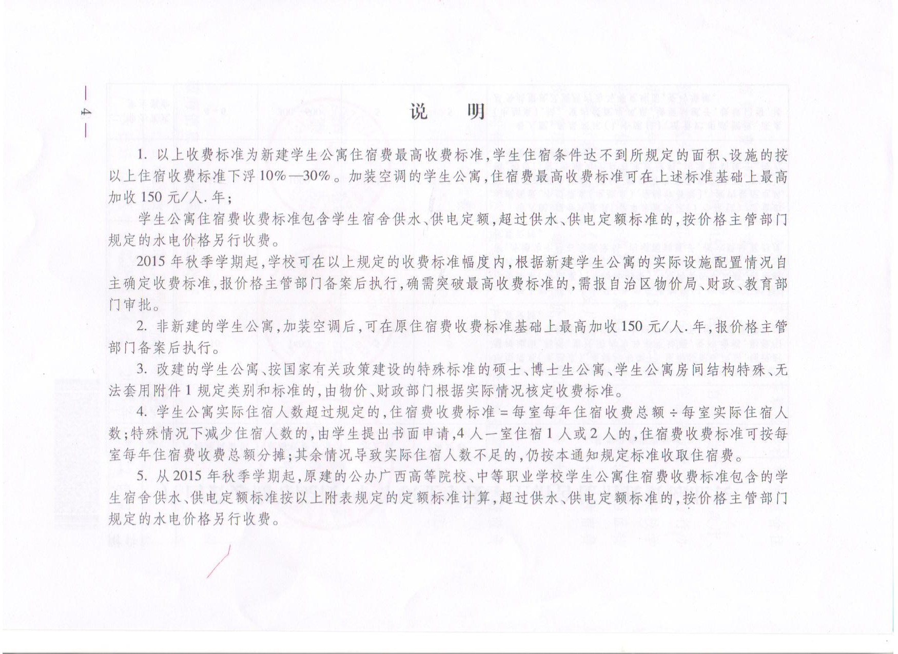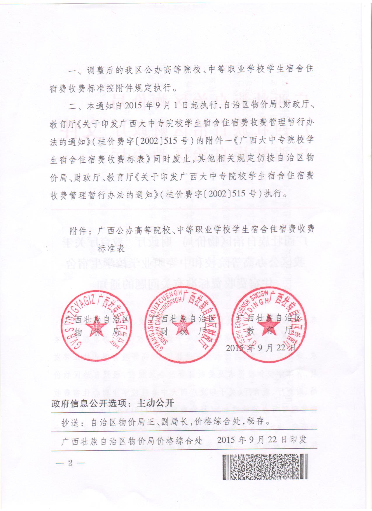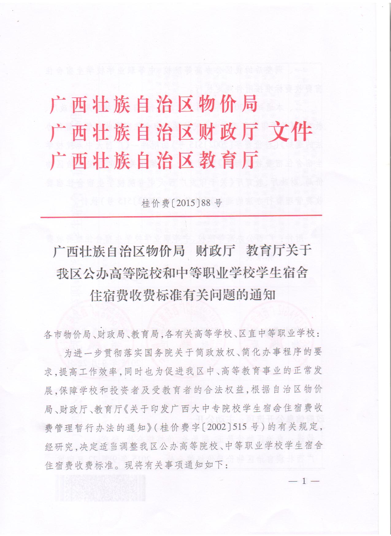 关于我区公办高等院校和中等职业学校学生宿舍住宿费收费标准有关问题的通知(桂价费[2015]88号)