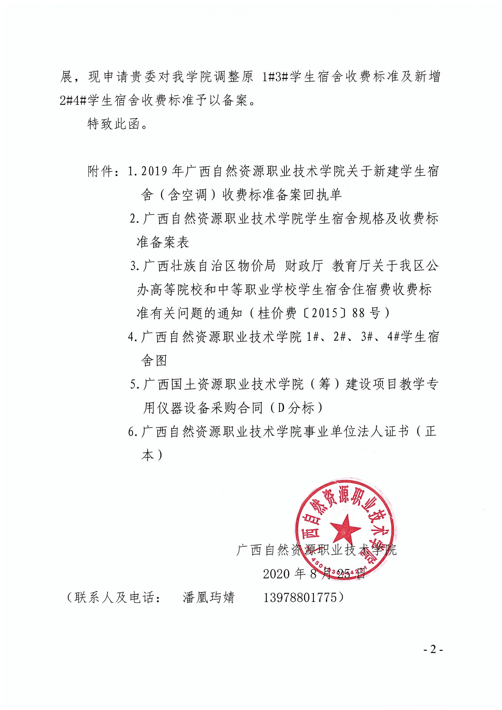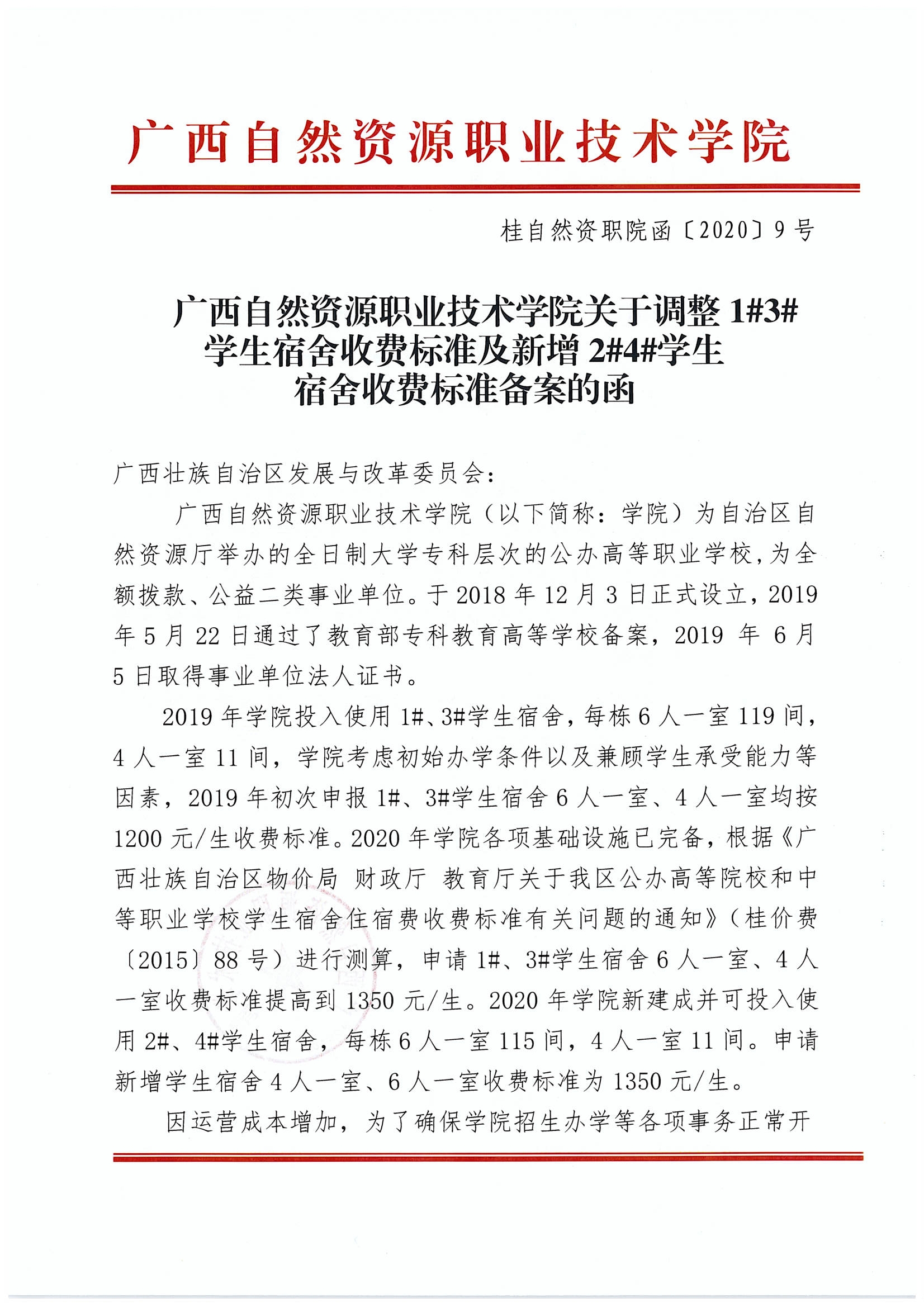 pp电子官方网站关于调整1#3#学生宿舍收费标准及新增2#4#学生宿舍收费标准备案的函 桂自然资职院函【2020】9号