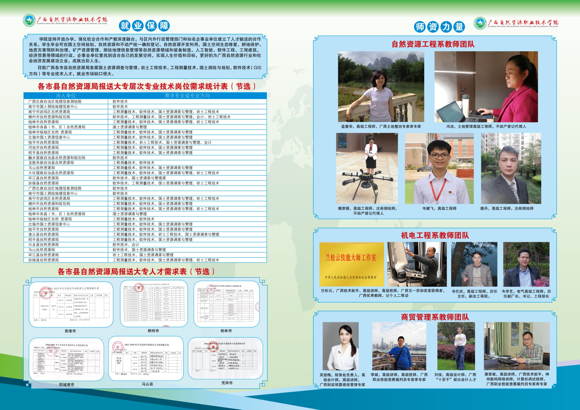 学院坚持开放办学,强化校企合作和产教深度融合,与区内外行政管理部门和知名企事业单位建立了人才输送的合作关系。学生毕业可在国土空间规划、自然资源和不动产统一确权登记、自然资源开发利用、国土空间生态修复、耕地保护、地质灾害预防和治理、矿产资源管理、测绘地理信息管理等自然资源领域和装备制造、人工智能、软件工程、工程建筑、经济贸易等领域的行政、企事业单位里找到适合自己的发展空间,实现人生价值和目标,更好的为广西自然资源行业和社会经济发展建功立业,成就出彩人生。