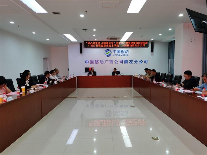 11月17日下午,pp电子官方网站党委副书记、纪委书记(兼)刘勇一行12人赴中国移动崇左分公司,开展调研暨“同心强党建 和创新未来”党建和创共建活动。学院党委委员、组织人事处处长黄锡桢,教务科研处处长刘平,图文信息中心主任潘章斌,自然资源工程系主任王根伟,商贸管理系主任李斌以及院属各部门(系部)党员代表等参加活动。中国移动崇左分公司纪委书记、副总经理甘军,扶绥分公司党支部书记、总经理邱凯等出席活动并座谈。