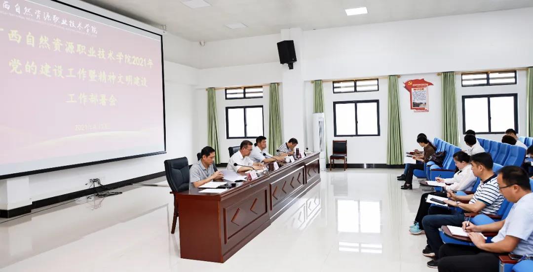 在会议中,学院副院长韦绍宁宣读了自治区自然资源厅2021年精神文明建设工作计划;学院党委副书记兼纪委书记刘勇宣读了自治区党委教育工委2021年党建工作要点。